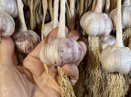 The New Zealand Purple Garlic bulbs that we offer for sale will have a minimum diameter of 60mm, containing 5 or more large cloves.